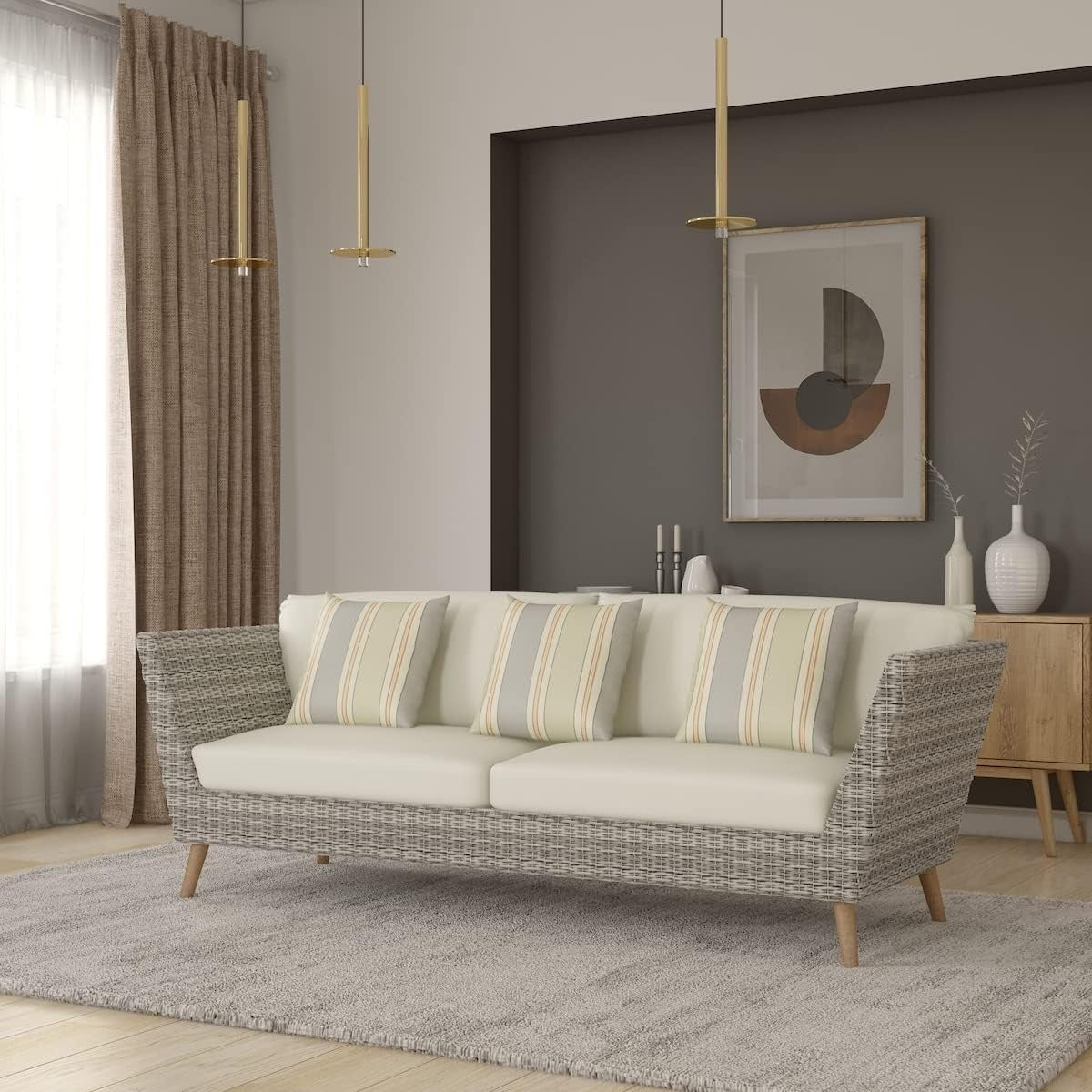 - Wicker color: distressed Grey. Wood color: natural. Cushions color: light Grey