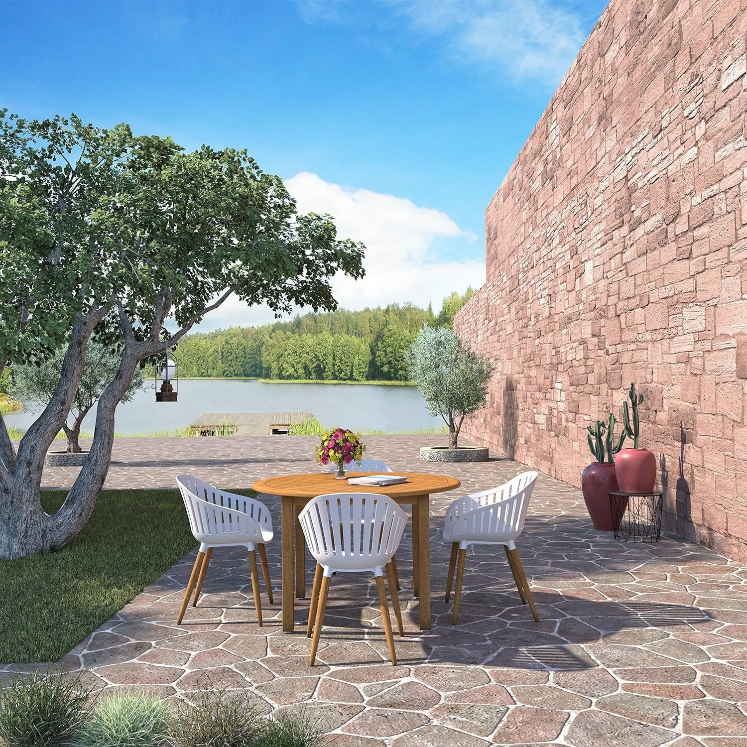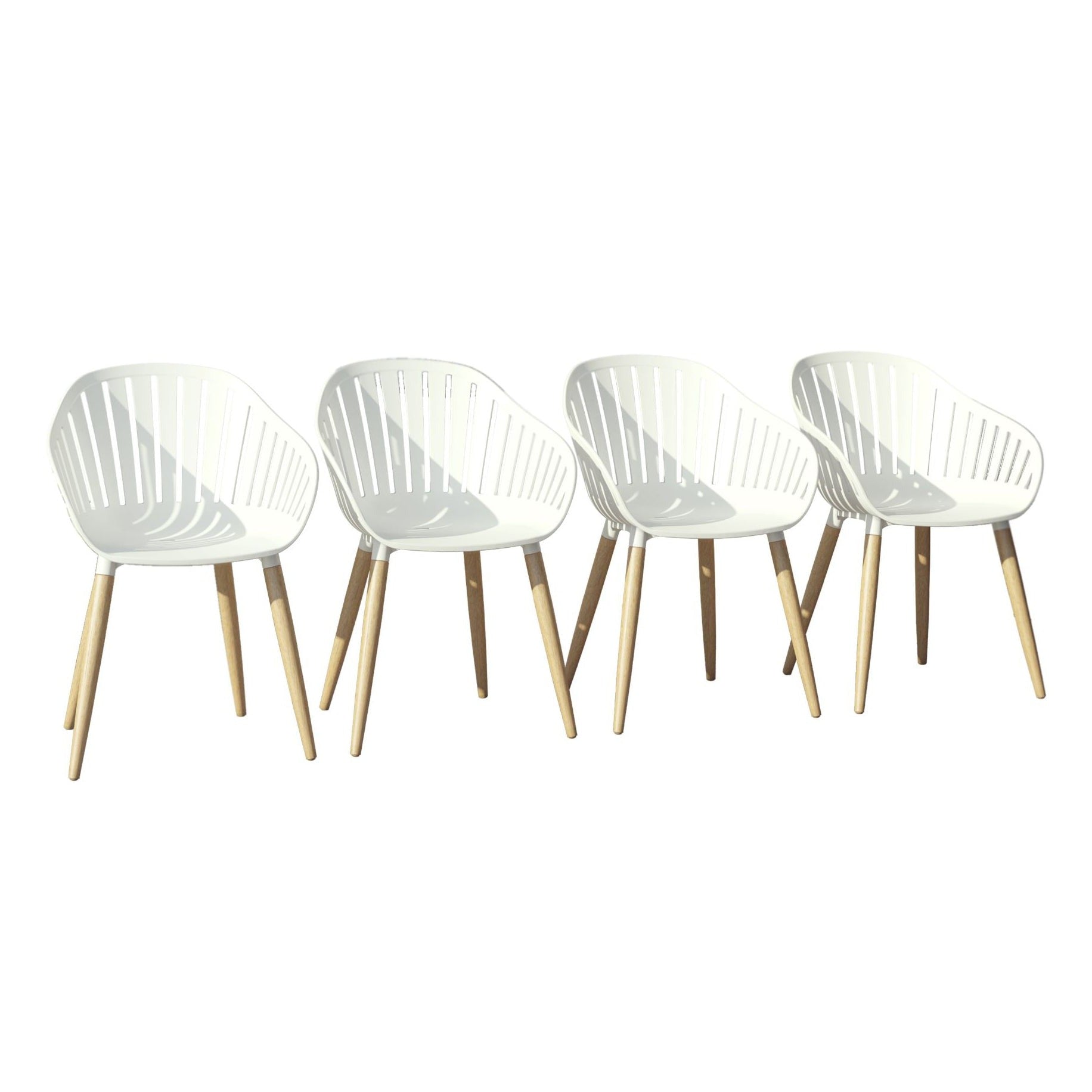 Vent Patio Chairs | Teak Finish, White Resin Seat | Outdoor Dining, Indoors (White, 4-Piece)