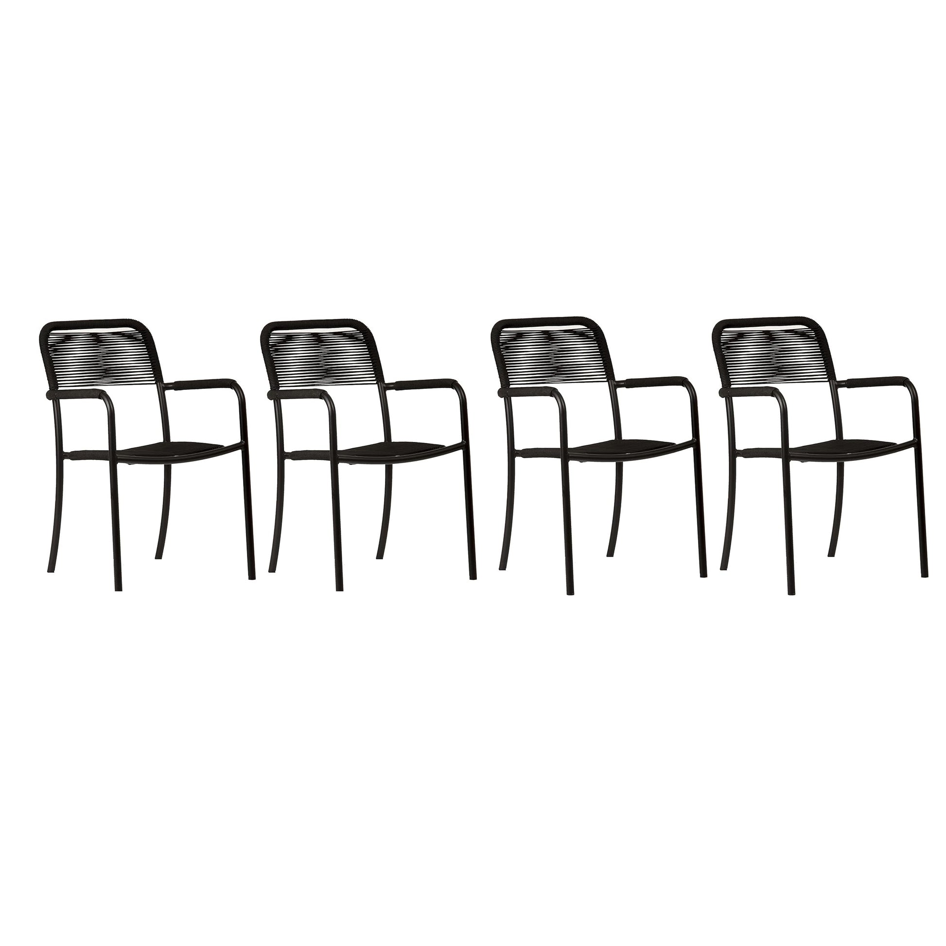 Luna Patio Chairs | Aluminum Frame, Rope Seat | Outdoor Dining, Indoors (Black, 4-Piece)
