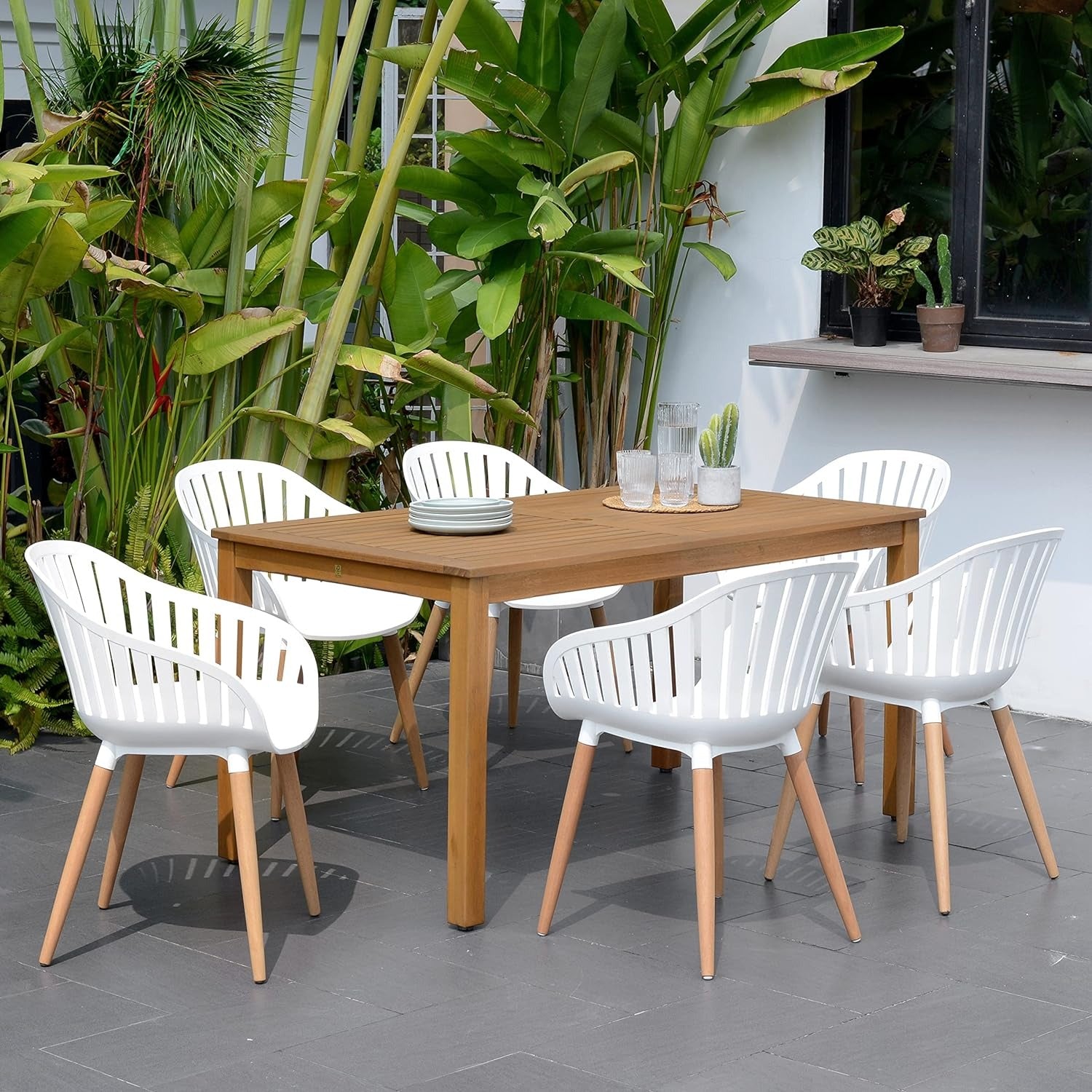- 7-PIECE SET | This set includes 6 100% FSC certified eucalyptus white chairs and 1 teak finish rectangular table. This set will make your outdoors an elegant space to enjoy with family and friends.