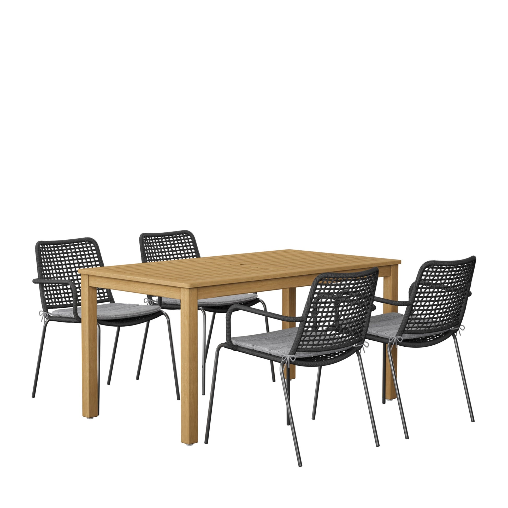 Rituals Patio Set | Teak Finish, Rectangular Outdoor Dining, 5-Piece Black