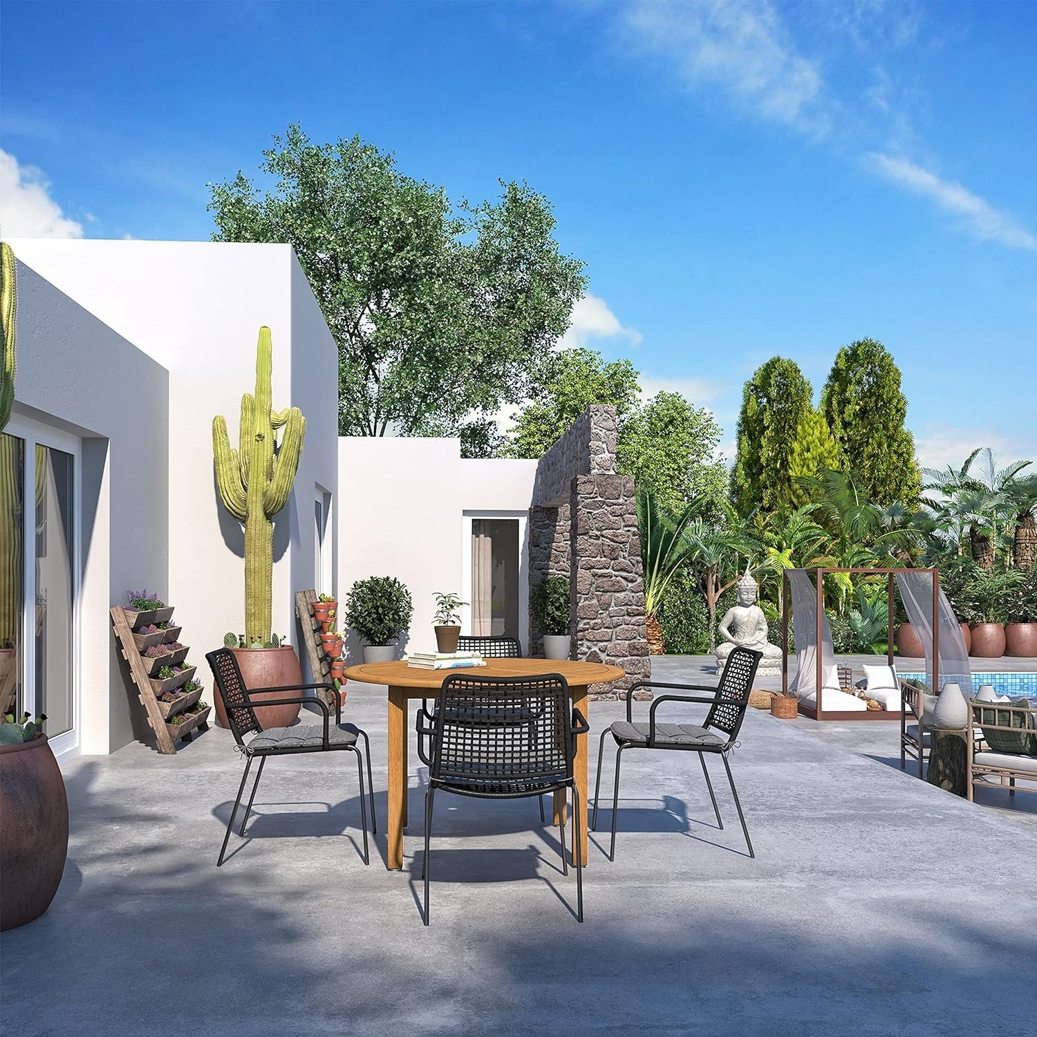 - MODERN DESIGN | "Geometric Weave" - These patio chairs feature a detailed rope weave design that is able to provide a durable and resistant rope structure with an unique appearance.