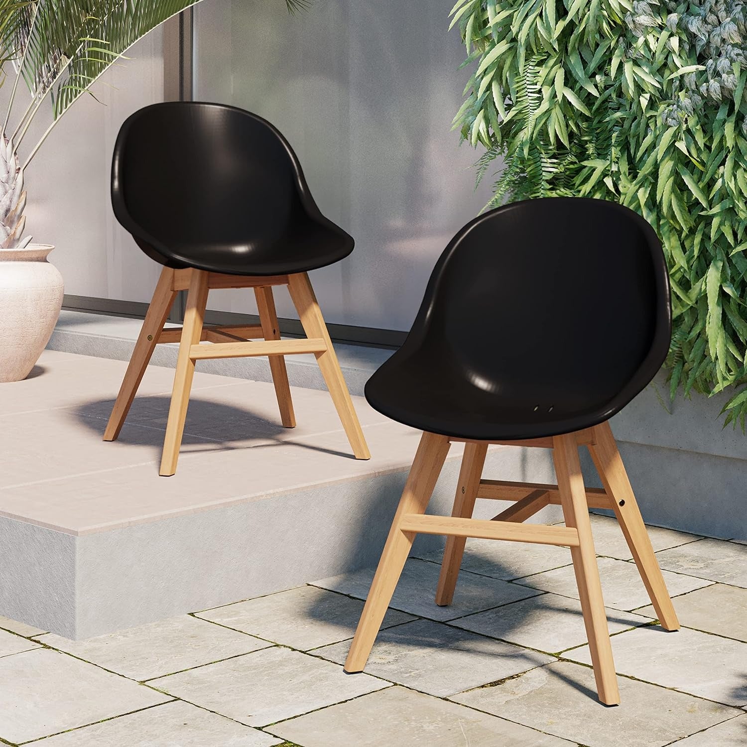 Terra Patio Chairs | Teak Finish, White Resin Seat | Outdoor Dining, Indoors (Black, 2-Piece)